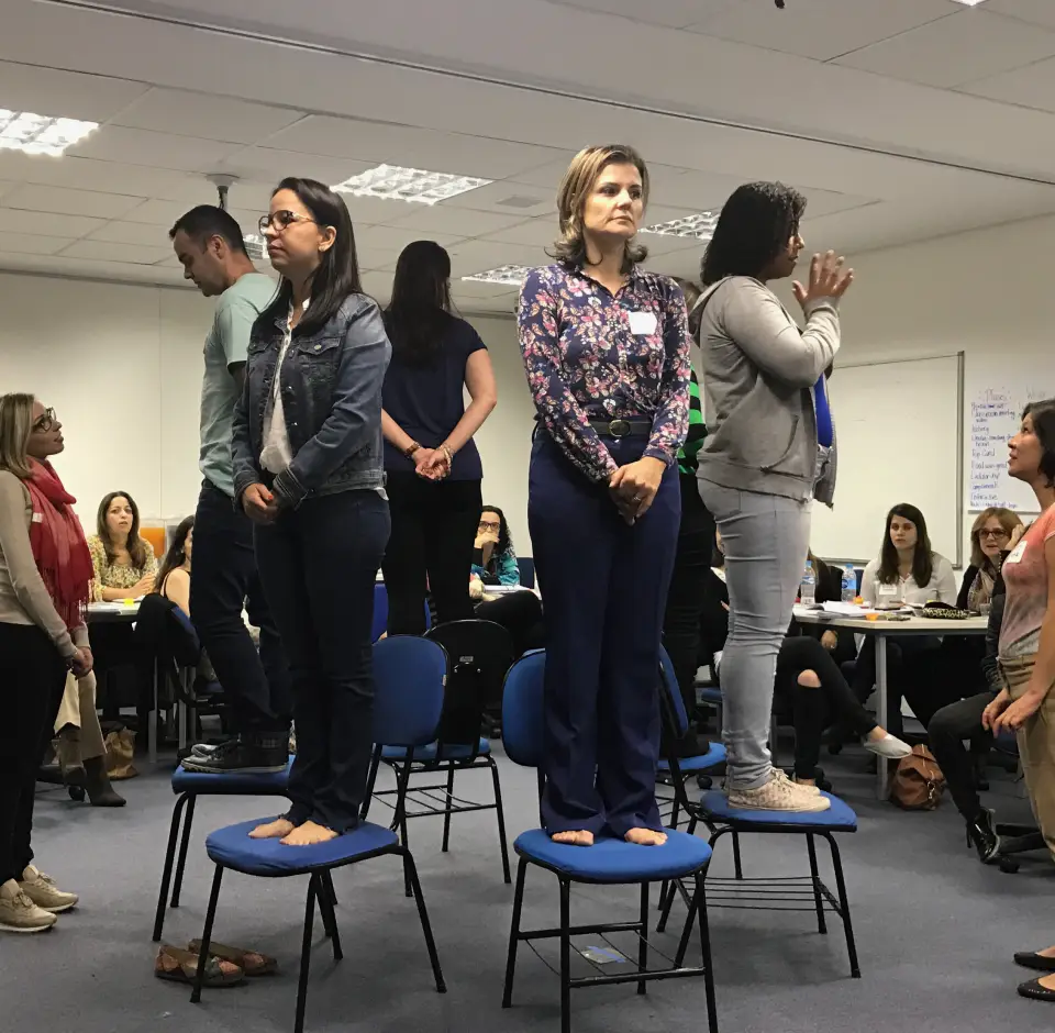 Nada de teoria distante! As vivências e dinâmicas de grupo proporcionam uma imersão transformadora.